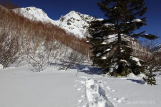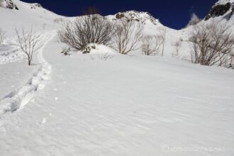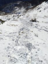 中の湯温泉旅館から登山口へのショートカット道まで、極太の立派なトレースが出来上がっていました。