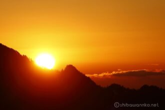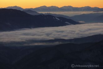 昨日に引き続き、焼岳山頂からの朝焼けを撮ってきました。