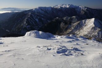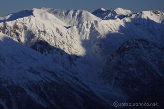 笠ヶ岳から北アルプス深部に続く峰々はもう真っ白で何が何の山かなんだかよく分からない。
