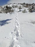 薬師岳まで下りてくると、薬師岳で引き返えしていった登山者のつぼ足トレースが残っていました。