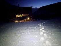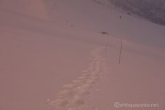平日朝焼け狙いのタイミングで山に入れば、やっぱりラッセル一番乗りになるか。