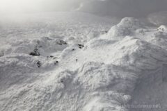 だたっ広い安達太良山の稜線は、発達した厳冬期のシュカブラが形成されていた。