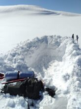 しかし、狭くもなくどちらかと言えば広い平らな稜線で、55リットルのピッケル・アイゼン、水筒500mlフル・食料、そして望遠レンズと、重いものをしこたま入れた重量物が一瞬で消失するとは想像しにくかったのも事実。