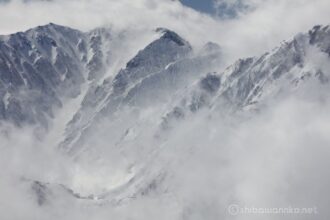 嵐から姿を現し始める杓子岳や白馬鑓ヶ岳の迫力が凄まじい。