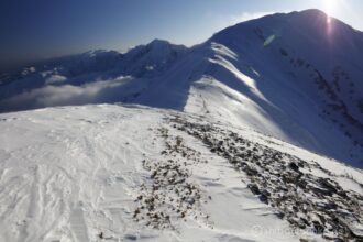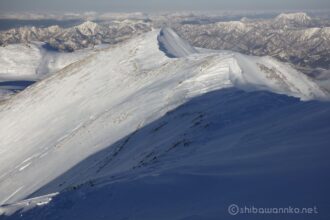 この稜線だったらピッケルアイゼンなくても、ライトニングアッセントとダブルストックで十分行けるだろう。
