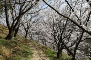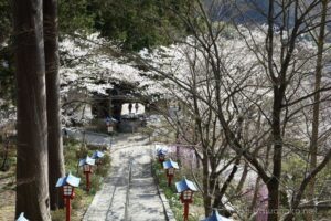 細い山道を歩くとほどなくして満開の桜が迎えてくれます。