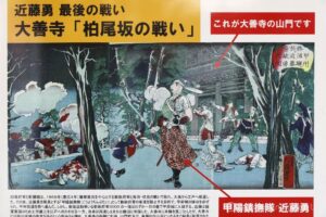 山門には新選組の近藤勇が官軍と戦った説明案内板が置かれていました。