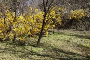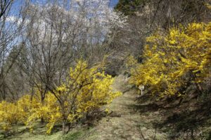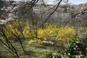 メインの会場らしきところまで下りてくるとここまたレンギョウが満開。