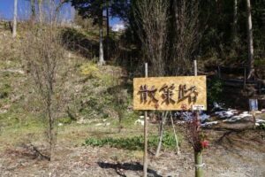 少し先にある駐車場に車を止めて、散策路の看板脇から歩き始め。