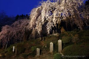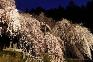 静かに綺麗な枝垂れ桜のライトアップを楽しめる、よい桜夜景スポットでした。