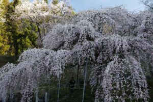 仕方がないので日陰になった満開の枝垂桜を撮ります。