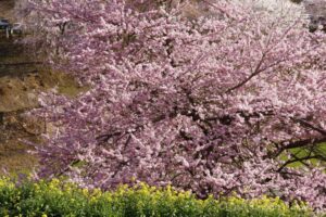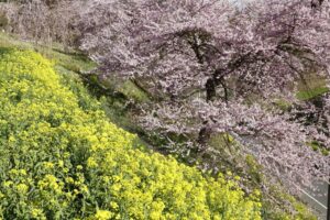 駐車場の桜の菜の花を撮ってから、枝垂れ桜に向かいます。