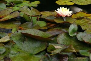 蓮の葉っぱの下にはでっかい何匹も鯉が潜んでいる。