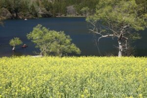 菜の花と湖と絡む光景が美しい。