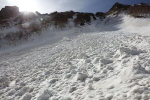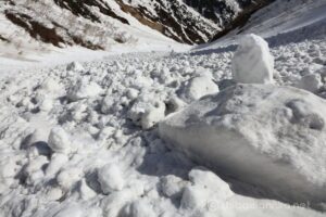しかもこれほど大規模に雪崩れて雪渓の大部分を塞ぐようになると、逃げることもほぼ不可能ではないか。