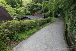 キャンプ場下の無料駐車場に車を止め、キャンプ場脇から遊歩道を歩いていく。