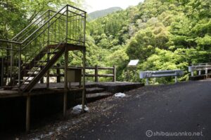 観瀑台から少し進むと、何やら滝口に下りれるような遊歩道がある。