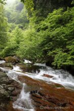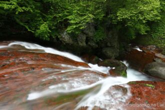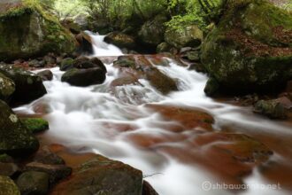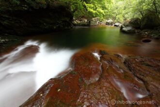 横谷渓谷は落差のない岩盤を広く流れる渓流瀑なので、高速シャッターよりもスローシャッターの方が合う場合が多いでしょう。