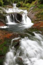 滝だけを撮るのではなく足元の渓流の流れと合わせて撮ると、高さと躍動感が出てより王滝の素晴らしさが表現できる。
