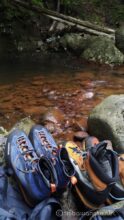 登山靴だけで、渡渉や濡れるときだけ裸足で歩くというスタイルは、安全上あまりお勧めしません。