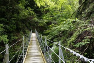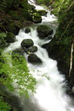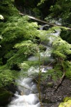 第二の吊り橋からは、荒々しく流れる渓流沿いを歩くことになり、大滝だけでなく渓流を楽しむことができる。
