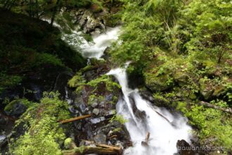 大滝前では、苔むした斜面から流れ込む小滝が綺麗。