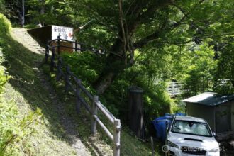入口は県道29号線から、梅ヶ島温泉に到達する前の右に下りていく細い道を行きます。
