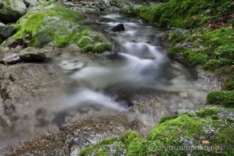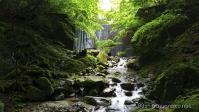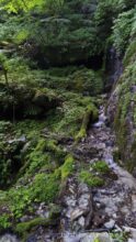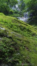 光りが届きにくいためか、渓流周りをコケゴケが覆い尽くしている。