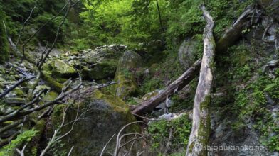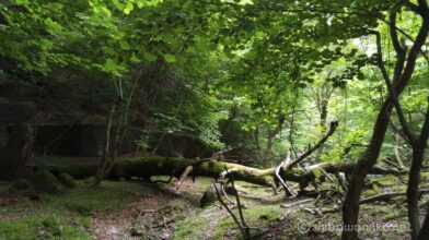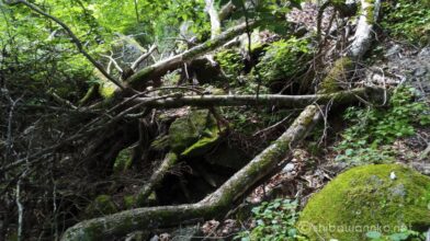 三条の滝を超えて進むと、倒木が倒れ込んでいる。