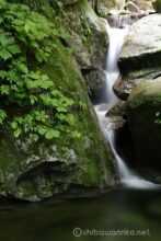 桑の木沢の渓流は浅く、渡渉を何度も繰り返しますが、ハイカットの登山靴でも黒戸噴水滝まで行けます。