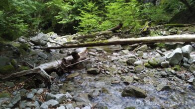 桑の木沢は、共通して水量も多くなく、渓流の深さは浅いので、登山靴でも渡渉ができないところはほぼありません。