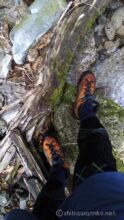 前半は大丈夫だったので登山靴で通してしまいましたが、後から思えば早々にフェルト底の沢靴に替えておけばよかった。