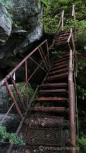 桑の木滝から上流へは、桑の木滝のすぐ上部にある右岸の鉄製の階段を進んで行きます。