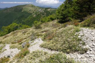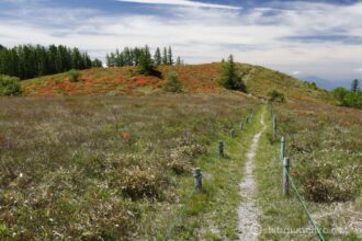 気持ちの良い道の向こうにレンゲツツジの群落。