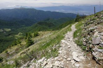 なだらかな稜線の向こうに、次行く武石峰のピークが見える。