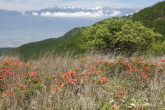 そして、反対の北側斜面にはレンゲツツジの大群落。