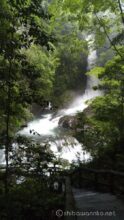 途中の展望台は釜滝に近すぎて水飛沫が凄い。