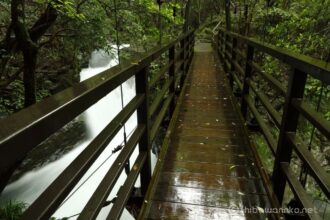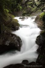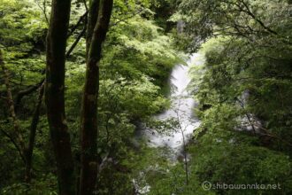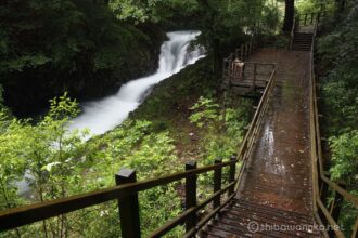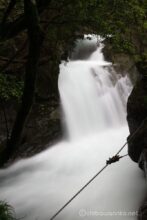 吊橋横の狭い箇所に落ちるので、滝だけを上手く撮ることは難しいです。