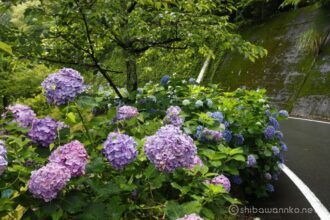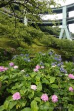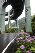 車で河津七滝ループ橋まで来ると、まだまだアジサイが満開でした。