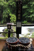 「三個の小石を投げ一個でも岩の上にの得ることができれば願い事が叶う」と書いてあります。