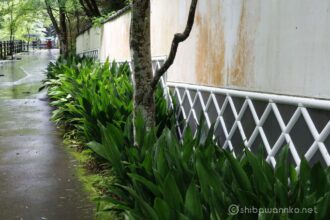 温泉施設の脇の小道にはまだアジサイが咲いている。