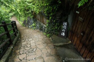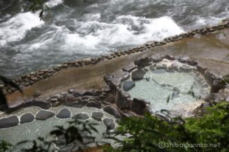 これまた味のある貸切風呂「洞穴の湯」の脇を通って川に下りて行くと、、、
