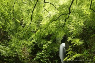 何の変哲もないオーソドックスな滝ですが、滝の周囲の淡い緑と合わすと綺麗です。