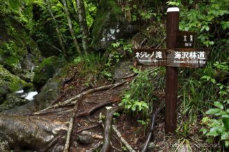〔必要装備〕距離は短いが山道で濡れると滑りやすいので登山装備が適する。最低スニーカー、ヒール不可。