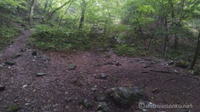 ネジレの滝から急斜面を登ると、こじんまりとした分岐の広場に出る。
