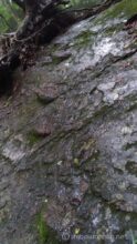 滑る大岩を乗り越えて行きますが、岩にはコンクリでステップが切られています。