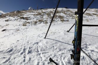 さっくり3分で、スキーをデポしているリフトトップに到着。