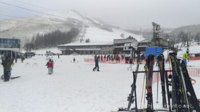 微妙な天気で朝焼けは難しそう、ってことで友人のお誘いに乗ってゲレンデスキー。