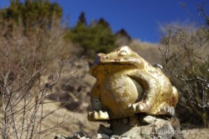08:20 つつじヶ丘まで戻ってくると、ガマ蛙たちがお出迎え。