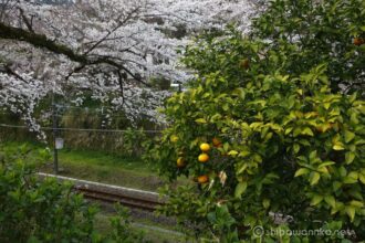 桜と列車を撮ろうとしても、今カメラについているレンズは100mmマクロ。